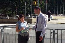 ![]() Norna和妹妹Jennifer向路人讲法轮功真象 |