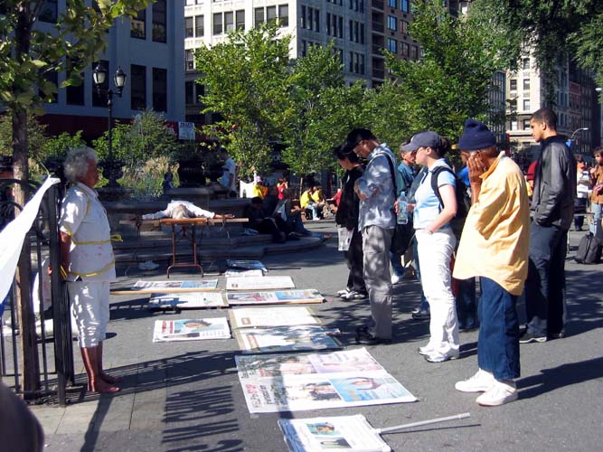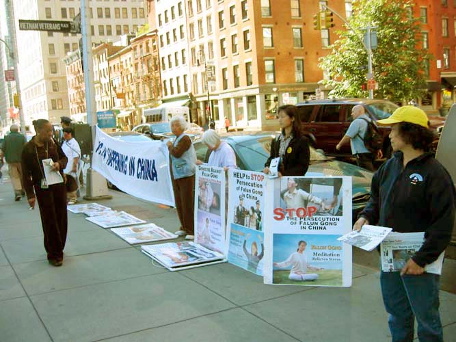 本周在曼哈顿每天都有8-9个反酷刑展示点,获得了很好的讲真象效果。