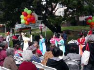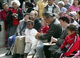 当晚, 学员为居民们進一步介绍法轮功,还表演了仙女舞和扇子舞,令在场观众赞叹不已。学员们慈悲的心、祥和的音乐感染了在场的每一位观众。原本闹哄哄的场地,一下变得非常安静;只有纯正祥和的音乐回荡在广场。