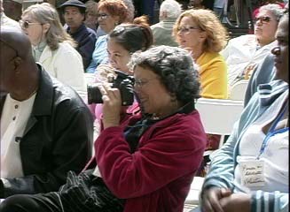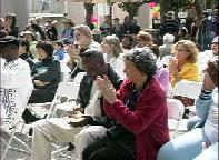 旧金山中领馆坐落在一个庞大的居民区旁。自99年7.20江××集团开始对法轮功的迫害,湾区的学员就每天在中领馆前静坐,呼吁停止迫害。同时,学员不断的与居民、警察讲清真象。临近居民逐渐由不解、抱怨到同情、 支持,也明白了江氏集团对法轮功迫害的残酷。