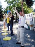还有一位女士告诉学员,她过去骑车路过这里时,经常能见到法轮功学员,但从未想到过要停下来看个究竟。她说不知道法轮功被如此残酷的镇压,她花了很长时间仔细观看了展板并带走了真象资料。