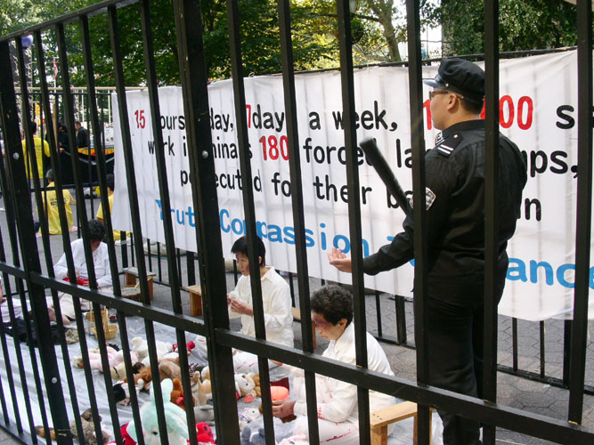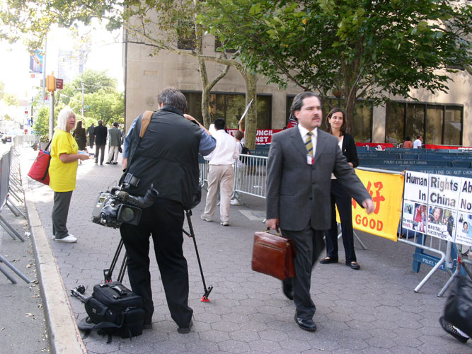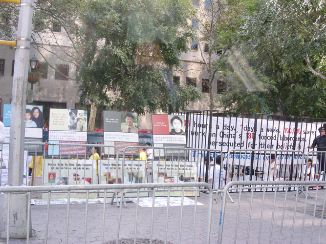 图片报道:在纽约联合国总部召开年会期间讲法轮功真象