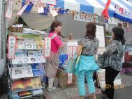 【明慧网2004年9月24日】2004年9月18日和19日,在日本东京都千代田区日比谷公园,熙熙攘攘的人群赶来这里正在举办的TOKYO ASIAN CITY FESTIVAL 2004 〈东京亚洲城市节日〉。在小音乐堂对面的广场上,有亚洲各国出场的饮食、服装、杂货等摊位,人们为着各自的喜好穿梭在其间。有一位在东京经营三家饮食店的干练大方的女士,亦在这人头攒动的场地里摆出了自家的饮食摊位,所不同的是,她家的摊位前除了设有供客人使用的桌椅,还摆有一个独一无二的法轮功真象资料架,单是文字就有日文的、中文的、英文的、韩文的,CD有中文的、日文的、有图象的、有音乐的,还有日文的五套功法图片文字介绍的彩色书签。一台电视和CD机不停的交替播放着天安门自焚和历史的审判及大法真象歌曲。