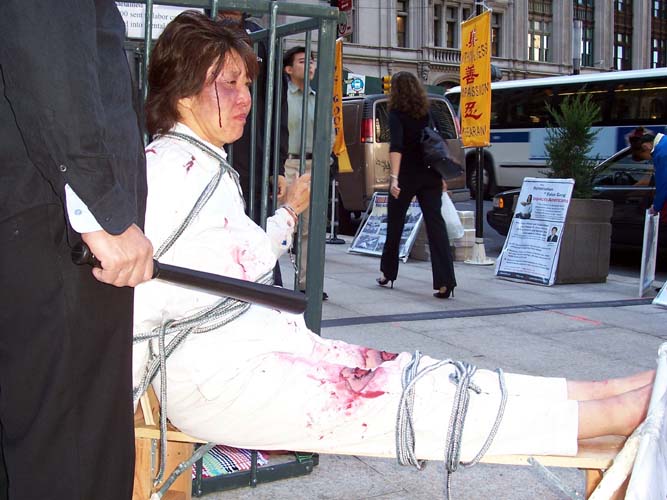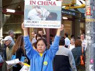 一位路人说,“法轮功炼功打坐是和平的,我不明白中国[江氏集团]怎么会这样对待你们。”学员告诉她说,人们炼功来强健身体,并按照真善忍做好人,很多人觉得功法好,都希望学炼李洪志老师传出的法轮功,但是中国当时的领导人江××出于小人的妒嫉心,容不下人们这样做,结果它利用权力发动了这场迫害。导致至少一千多人被折磨致死。