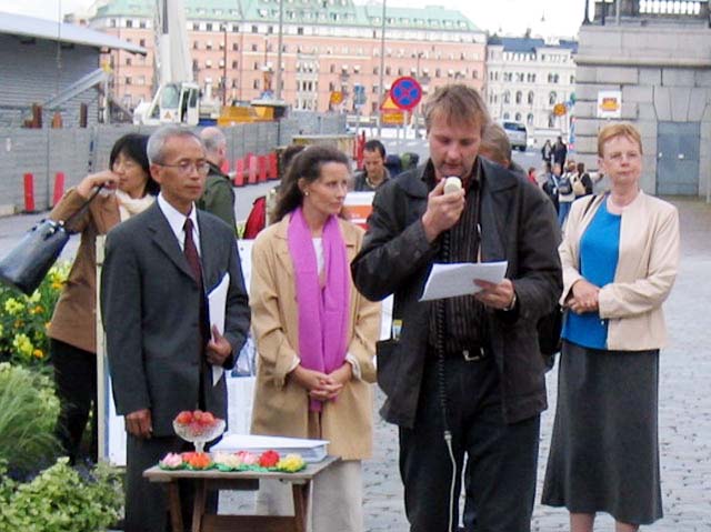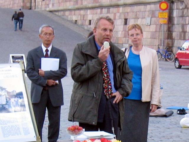 人权律师彼得•柏依奎斯特在新闻发布会上说:中国不是一个法律独立的国家,人权被用来做交易。尽管法轮功是非政治性的,但由于炼法轮功的人数超过了中共党员的人数,所以被(江泽民)视为一种威胁。法轮功学员们遵循“真、善、忍”的法理,这使江泽民一伙感到了一种更大的道德方面的威胁。在世界很多国家展开了对这场迫害的主要责任者的起诉,瑞典也不例外。我们要将那些迫害法轮功学员的罪犯在中国或瑞典等国家绳之以法。