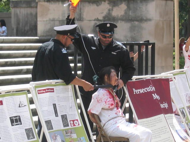一批一批的人群向展台汇聚,带着凝重的神情,震惊的看着发生在中国的无比黑暗的一幕。学员所能展示的只是冰山一角,江氏集团极力掩盖着对法轮功群众的疯狂虐杀的事实,在海外向中国人灌输着编造出来的谎言,煽动仇恨,制造混乱,使无辜的华人受到蒙蔽。当江氏集团对法轮功群众和广大华人所犯下的罪恶一览无余的暴露在光天化日之下时,所有的人不论肤色都会愤怒,因为那是对人类的犯罪。