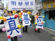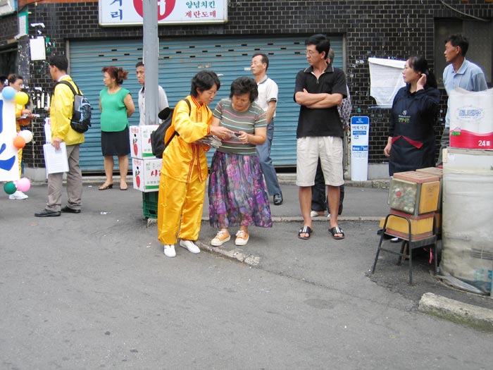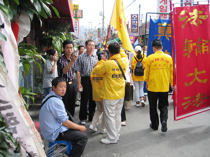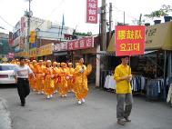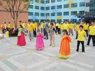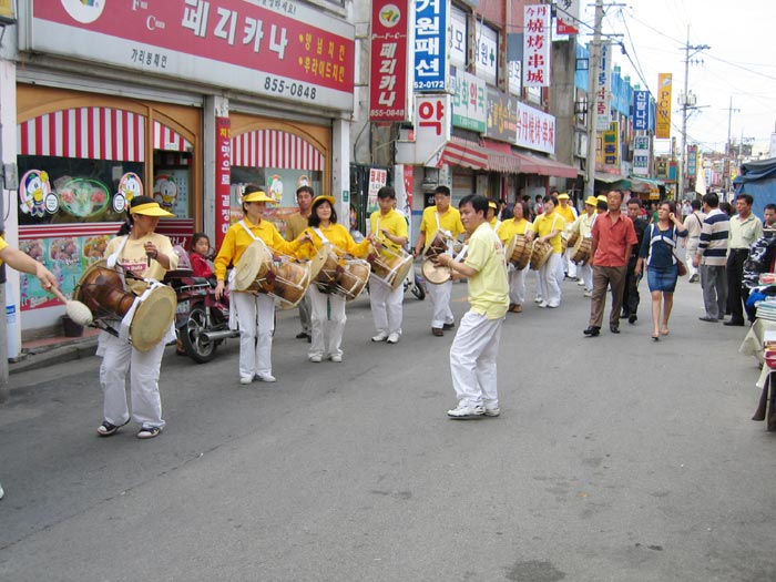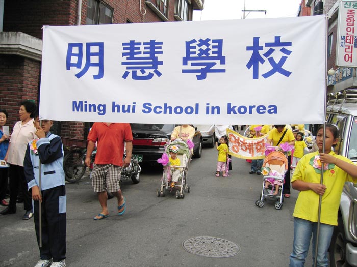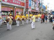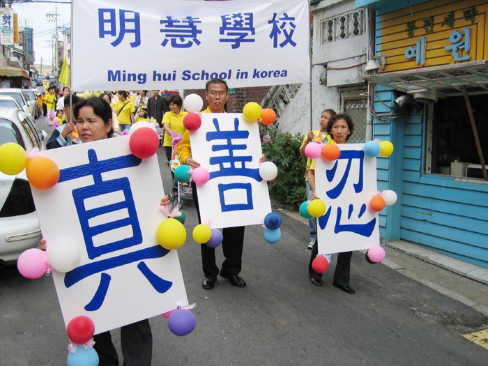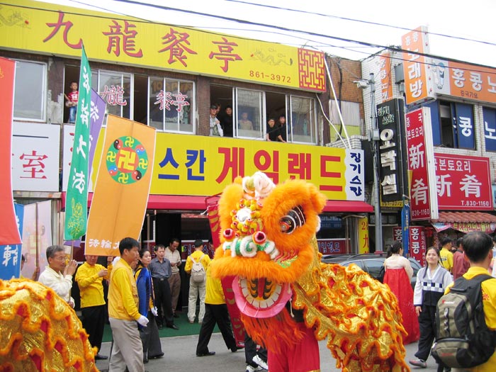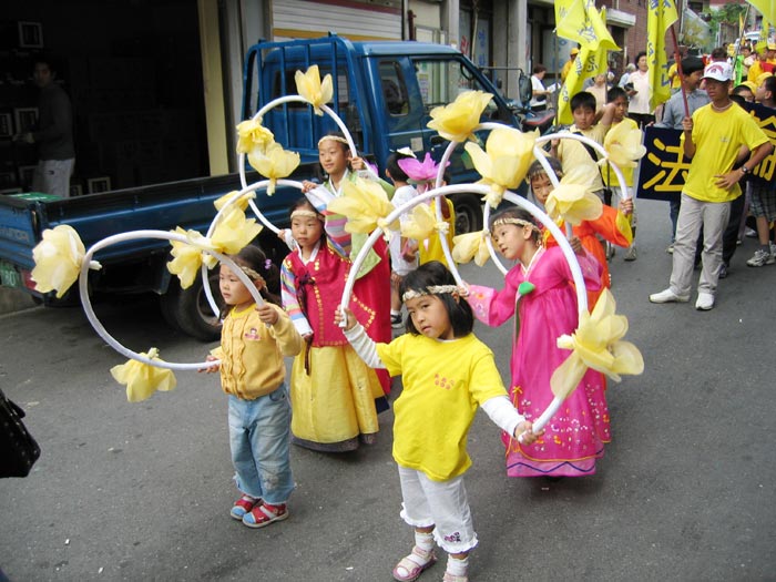 【明慧网2004年9月27日】中秋节是韩国人民一年中最为隆重的节日。为了帮助辛辛苦苦来韩工作、学习的中国朋友摆脱思乡之苦,并向他们更加深入广泛的讲清真象,韩国法轮功学员于中秋节前(9月26日),在汉城华人聚住区举行了丰富多彩的游行表演。