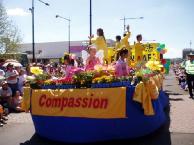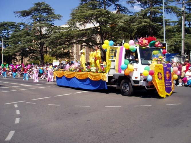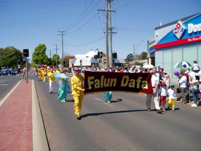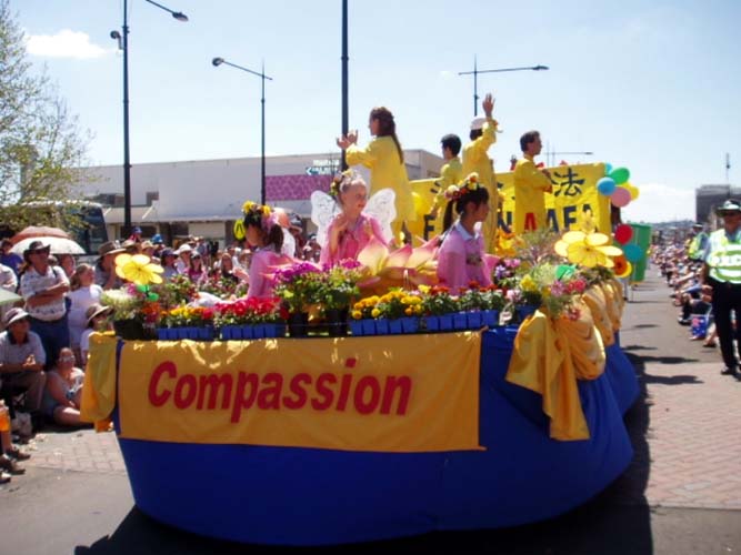 花节是昆士兰东南部最大的游行活动之一,有大约14万人参加。今年是图望巴市一百年纪念,昆省省长毕廷(Peter Beattie)也作为荣誉来宾参加了庆祝活动。当法轮功学员的花车经过广播台时,毕廷先生向他们微笑并挥手致意。