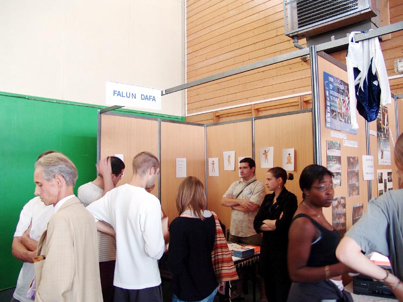 第一天,沙龙来了很多人,许多接受了法轮功小册子的人都问炼功点在那里,他们还在“以群体灭绝罪起诉独裁者江泽民”的征签表上签名,支持法轮功。