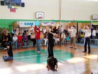 人们专注的看着这些动作还能听到一位学员用麦克风介绍法轮功的功法和其被迫害的情况。当功法表演结束时,观众报以热烈的掌声。
