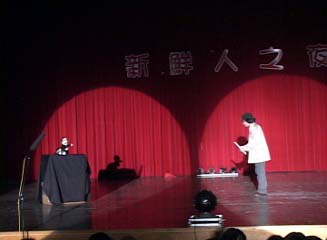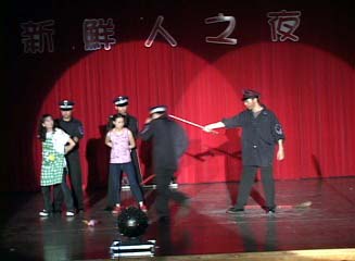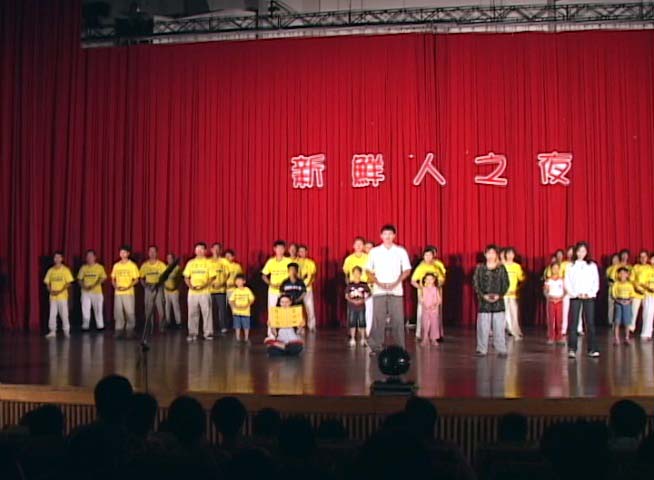 成大主办的新鲜人成长研习会,二零零四年九月十四日的社团联合迎新晚会是的最后一个活动,由参加的社团安排各具特色的表演欢迎新生。晚会的地点在成大成功厅,这是一个可以容纳上千名观众的表演厅。为了让众多新生能了解法轮功真象,又要具备舞台表演的活泼生动,台南县市修炼法轮功的青年学子,共同策划演出一出约九分钟长的真象短剧。