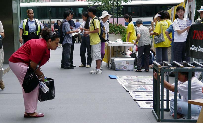 高峰会期间法轮功学员举行了包括新闻发布会、酷刑展、勇气长城、集体炼功等一系列讲真象活动。多伦多法轮功学员主要参与了酷刑展和在各个街口讲真象的活动。一个星期的活动期间,学员在不同场合偶遇了不少前来参加高峰会的代表和媒体,向他们发放了法轮大法资料,讲述法轮功和在中国被迫害的真象,也目睹了越来越多的纽约人了解了法轮功的真象,谴责迫害,支持法轮功的正义之举。在这一个星期的纽约之行期间,发生了很多有趣的小故事,下面仅举几个小花絮。