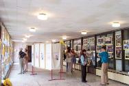 在乌克兰的乌日戈罗德市正法之路图片展现场人们观看章翠英的作品