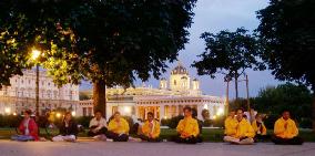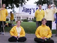 来自世界各地的游客看到了我们的展板和学员们祥和的炼功,知道了真象。很多中国旅游团经过了我们的场地,很多人接了真象资料。一位讲英文的游客看了展板上高蓉蓉被电棍烤焦的脸时,非常吃惊的问这样的事情是否正在发生。通过学员的讲解,她很同情被迫害的大法弟子,对镇压法轮功非常的气愤。
