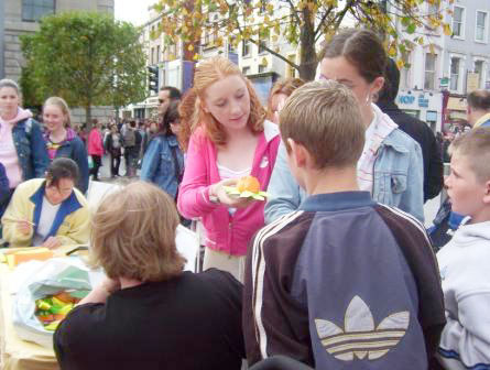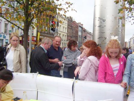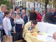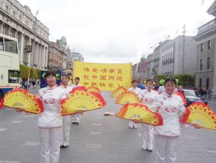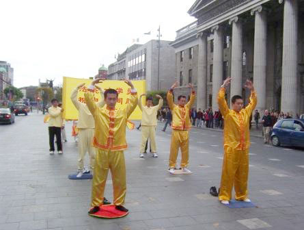 这一次最大的不同是中国人的变化,以往,尽管我们在都柏林的街头讲真象已有五年了,可是还是有很多中国人不敢和我们在我们的展板附近交谈。那天,有不少中国人在拿了资料后还和我们学员交谈了很长时间,而且聚精会神的观看功法演示和舞蹈。