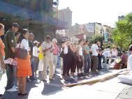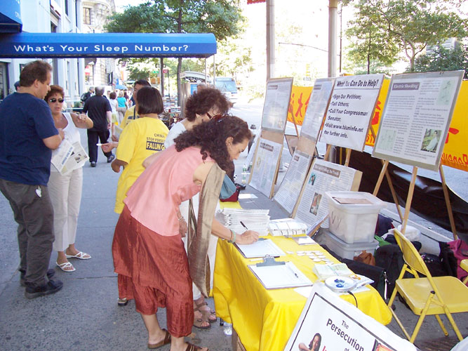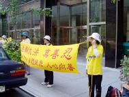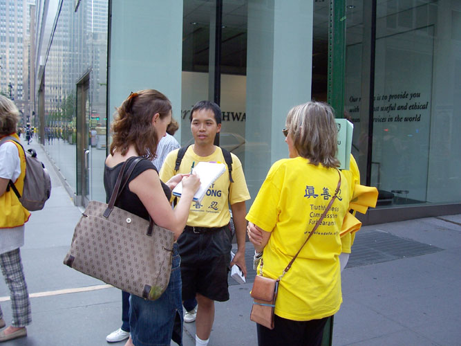![]() 手举横幅的法轮功学员 | ![]() 签名支持法轮功 | ![]() 学员在纽约街道上讲真象 |