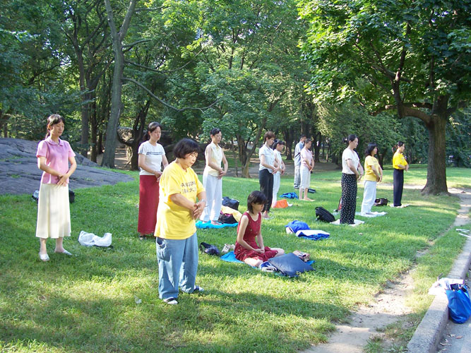 ![]() 法轮功学员在中央公园炼功 | ![]() 炼功 |