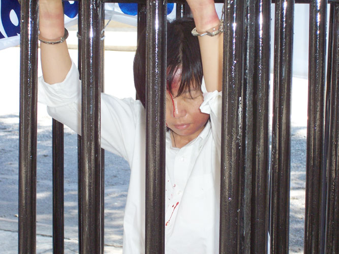 ![]() 酷刑演示:吊打 | ![]() 酷刑演示:蹲小号 | ![]() 震惊的观众 |
