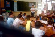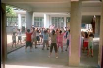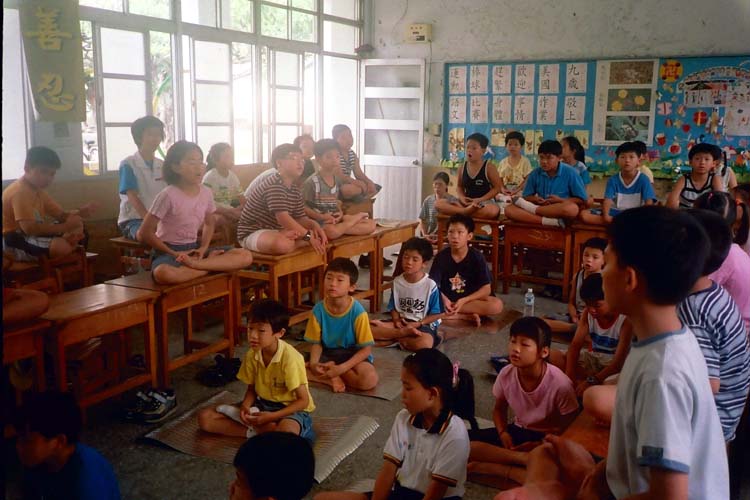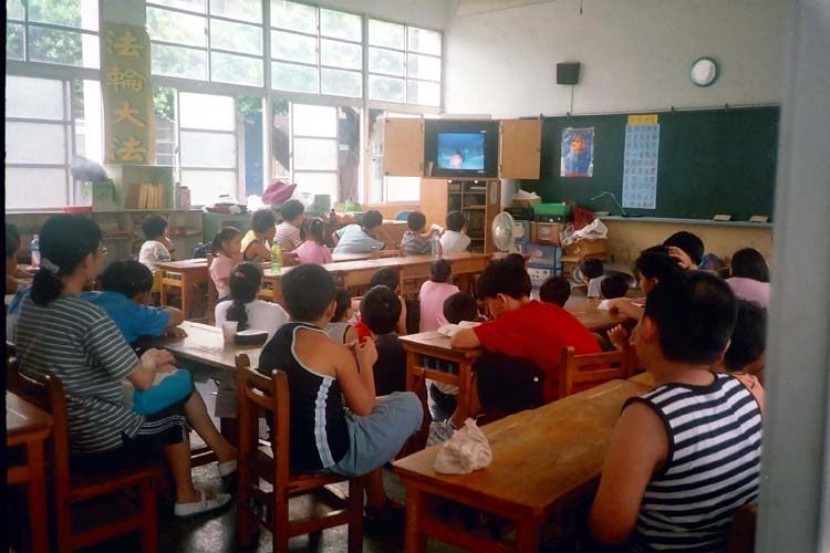 歌曲教唱以法轮功学员所创作的歌曲为主:包括“法轮大法好”、“我是明慧好学生”、“宝宝打坐”……小朋友们很喜欢唱,一下就溶入词曲意境中。《洪吟》的背诵:“做人”、“苦其心志”、“真修”、“实修”、“因果”、“同化”……孩子们也很快就能琅琅上口;低年级的小朋友安排团体活动:足垒球、射飞盘、跳绳、二人三脚、大王二王……,纵使烈日当空,也玩的不亦乐乎;中高年级的学员则安排书法习写,要他们静心写下:天地人、新三才、心中有真善忍等字。