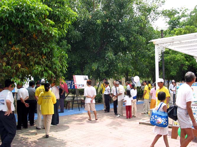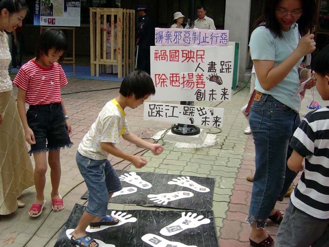 法轮功小弟子修炼“真、善、忍”个个身体健康、乖巧懂事,足以为青少年楷模,所以成为此次活动主角,上台表演腰鼓和展示五套功法,获得好评。现场还有真人模拟演出在中国对法轮功学员的酷刑迫害,触目惊心,民众看过直呼可怕,不敢想象。随着大陆江氏集团迫害的恶行不断曝光,连青少年都不放过,利用学校教育污蔑法轮功,毒害幼小纯洁的心灵,台湾民间团体纷纷呼吁全世界善良正义的人士,共同抵制江泽民集团对法轮功不人道的残酷迫害。