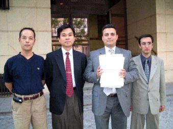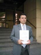 ![]() 律师卡洛斯-易格斯 ( Carlos Iglesias)在西班牙国家法院前手执诉状 |
