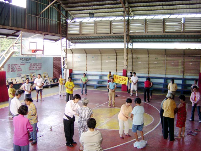 在马尼拉郊区有一个炼功点,大家的炼功动作不够标准,台湾学员去那里教功,帮他们调整动作,炼完功跟他们一起读法,送他们一片师父教功VCD,告诉他们读法的重要,希望他们能成立学法组,他们也很高兴的接受。