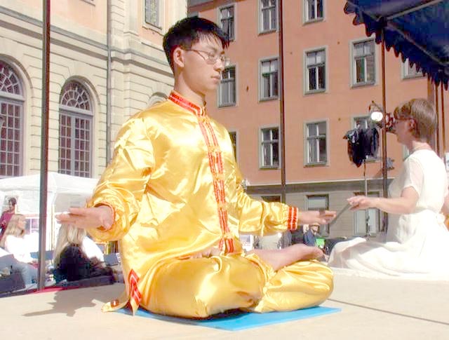 稍后学员展示了法轮功五套功法,同时解说炼功的目地及效果,许多民众都坐下来观看功法表演。之后一位学员演出了他所创作的有关法轮功的歌曲及与有关荷花的诗。在中国,荷花是纯洁与修炼的象征。