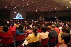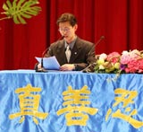 “亿万神佛降世尘,人间万古现天门,佛光七载遍中土,五年风雨除恶神,苦过方知人心重,难中愈感主佛恩,救度众生尽舍去,今开新宇万世春!”在两位主持人气势磅礴的开幕词下,揭开这次台湾修炼心得交流会的序幕。今年共有二十二位学员发言,其中包括律师、校长、教授、电脑工程师、博士生、教师等各界人士,他们自身的体悟、感受,让在场所有人士感动万分。