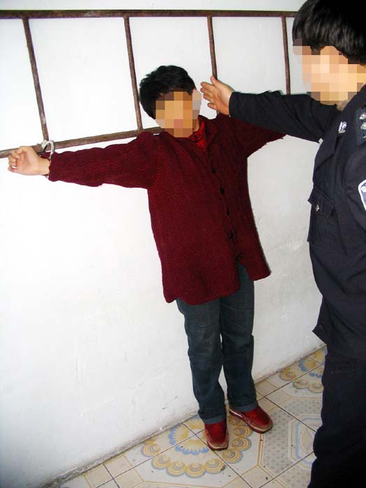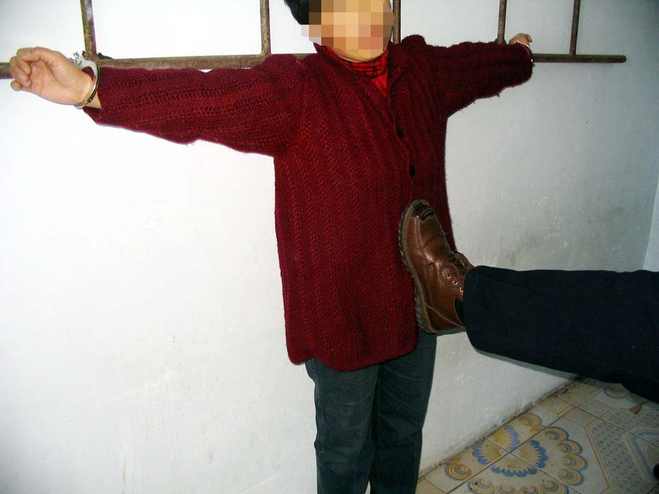 ![]() 图1:恶警把宋桂芬成大字型铐在墙上 |