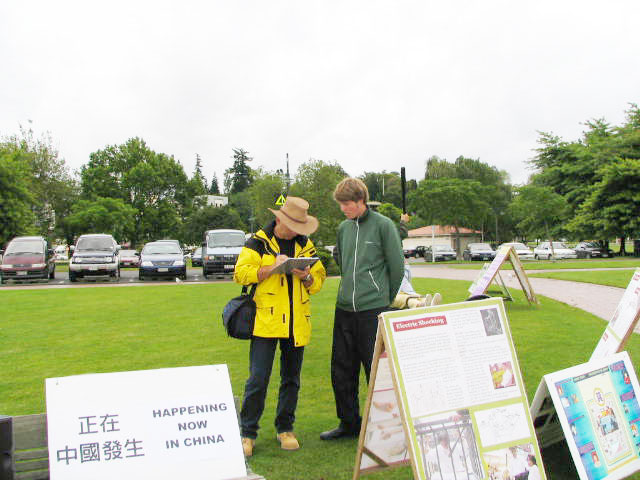 还有一位住在奥克兰的女士,在100多公里外的小镇上得到了真象资料后,来到奥克兰炼功点学功,并立即买了英文版的《中国法轮功》。