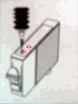1、 用空墨水后,把墨盒拿出打印机,按图1在墨盒空腔上用图3里的手钻(加丽CORALJET墨水自带)钻出两个出气孔,两个出气孔之间相距不要太大,随后把墨盒放回打印机;