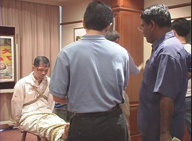 有的观众以为学员在展示着一些历史上发生的迫害。当学员告诉他这是目前正发生在中国的迫害时,参观者面露惊讶的表情,他无法相信在这二十一世纪的文明社会竟然还有这么不人道的残酷迫害。