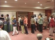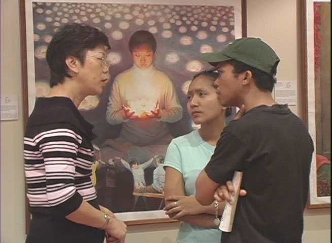 有的出席者一面看一面流泪,不断的问学员:“真的吗?这是真的吗?”也有的出席者仔细观看每一幅作品,细心聆听导览的解说,对江氏集团的迫害感到愤怒。