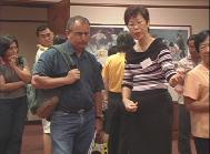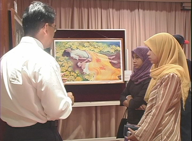 从中国来到马来西亚工作的一位中国人也到场参观反酷刑展。因为受了江氏集团造谣和谎言的蒙骗,他说中国电视上说炼法轮功会精神错乱和伤害自己孩子。学员就让他了解,会场的这许多人都是炼法轮功的,也有的带着孩子:“他们都像精神错乱或伤害自己的孩子的人吗?”他面露难以置信的表情。他和学员谈了很久,最后拿了很多真象资料,还微笑向学员道别。