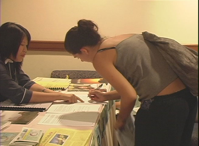 也有一些信仰其他宗教的人士到场参观,他们还留下了联络电话,邀请学员们到他们的教堂举办反酷刑展,因为他们的教堂有很多华人。