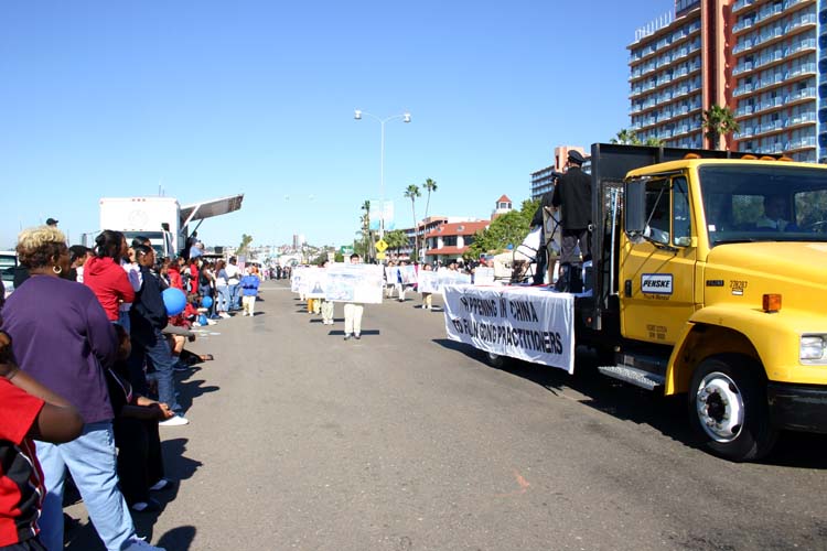 人们纷纷索要传单。人们不解的问:“为什么?”“为什么要迫害这群好人?”“我们怎么才能帮助你们?”一个西班牙语媒体的记者从始至终跟随着我们的队伍,不断拍照并问学员问题,最后表示要学功。一位黑人男士说,这些学员遭到的迫害比黑人历史上遭到的迫害严重无数倍。一个黑人小女孩一直跟在酷刑展车的后面,目不转睛的盯着几组展览。一名观众说,“你们做得对!就应该把邪恶揭露出来。”另一名观众说要帮助我们联系人权团体。