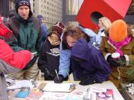 旁边的人都在听我们的对话。一个年轻的女孩走了过来,能给我一张明信片吗?她问。我马上递给她一张,并向她道谢。她说,“我在中国深圳住过三个月,我很喜欢中国和那里的人,我仍然和几个在中国的朋友保持着联系。”我就告诉她,“你知道吗,中国的民众在很多事情上都在被中共江氏集团蒙骗。希望你能把法轮功的真象告诉你的中国朋友。”她告诉我说,“我会告诉我的中国朋友的!”