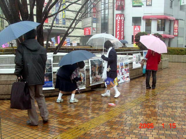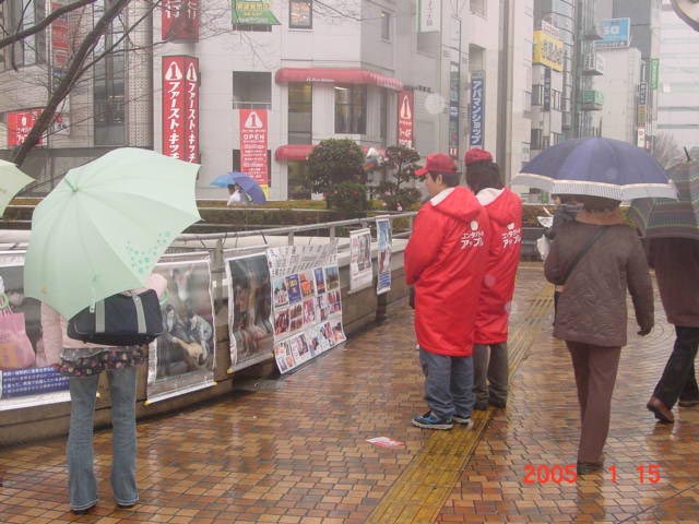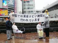 有一位茨城县来的高中生看了一幅幅法轮功学员受过酷刑的血淋淋的照片后,他感到吃惊和愤怒。这是他第一次听说这场迫害。他说:“能给我一些报纸吗?我有很多朋友、同学,我愿意帮助你们把报纸给他们,让他们也知道这件事。我非常热爱中国,不能容忍这样的酷刑。”接过报纸后,他不停的说“谢谢、加油啊”,还签名支持诉江。