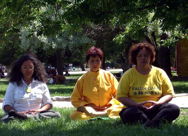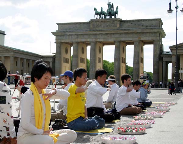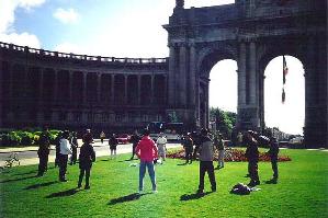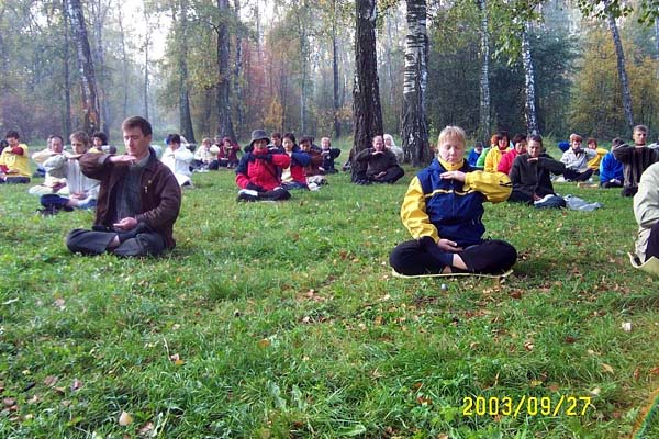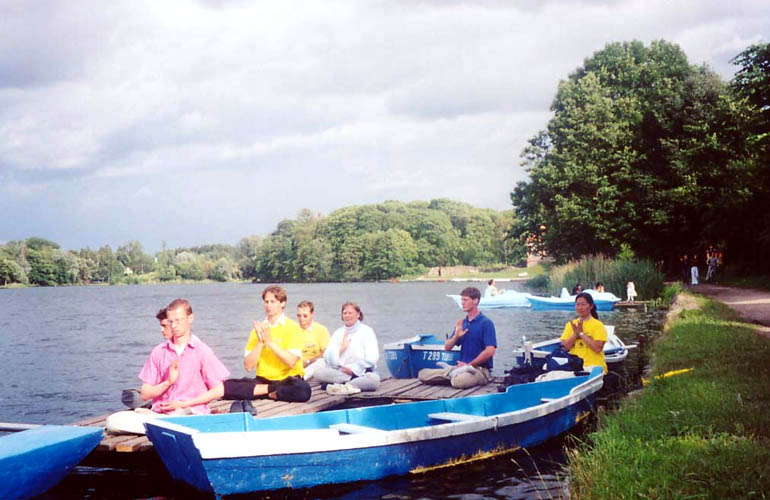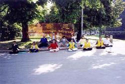 ![]() 2001年10月比利时集体炼功 | ![]() 德国小弟子打坐 |