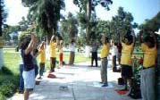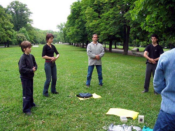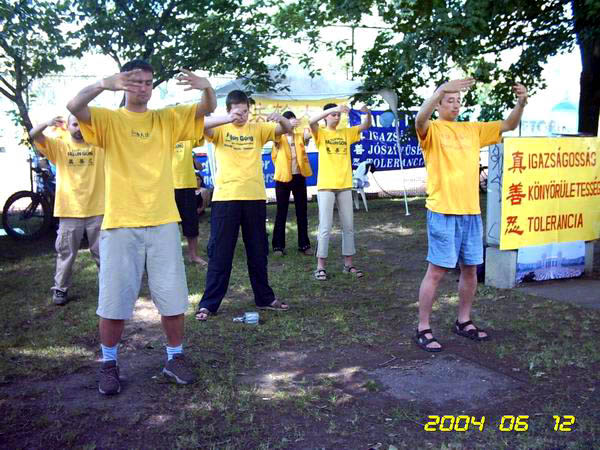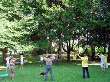 ![]() 意大利学员集体炼功 | ![]() 匈牙利学员洪法炼功 |
