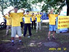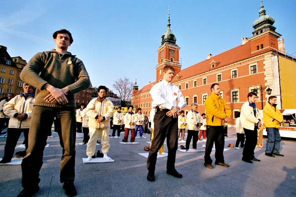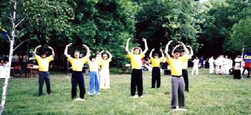![]() 2002年3月波兰和平广场集体炼功 | ![]() 希腊奥林匹克运动场炼功洪法 |