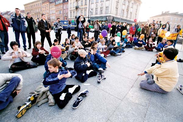 ![]() 2002年3月波兰孩子们学炼法轮功 | ![]() 2002年3月波兰孩子们学炼法轮功 |