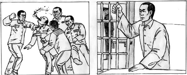 5、2004年初吉林监狱将特别坚定拒不转化的大法弟子转监后,又对狱内的大法弟子進行新一轮的迫害。它们于3月初将几十名大法弟子先后押進小号“矫治”。所谓矫治就是将人的四肢固定在木床的四个铁铐子上,可松可紧。这种酷刑对人身体危害极大,铁铐子往往会勒進肉,而看着的犯人往往受恶警指使或纵容,对大法弟子進的迫害。2004年3月中旬大法弟子虞洪飞因不配合邪恶转化,绝食后被押入小号“矫治”,在進行了四十余天的灌食后,他被转入严管,由于长时间的灌食,造成肠胃不好,但看护犯人不让上厕所而导致其三次大便失禁在裤子内。吉林监狱教育科恶警李永生、谭富华是典型的邪恶烂鬼,常指使、纵容犯人迫害大法弟子以达到它们的目地。而且它们配合610邪恶之徒软硬兼施的对大法弟子進“洗脑”强制转化。