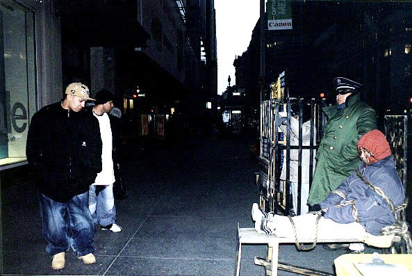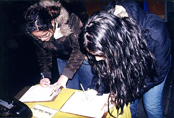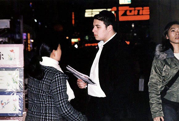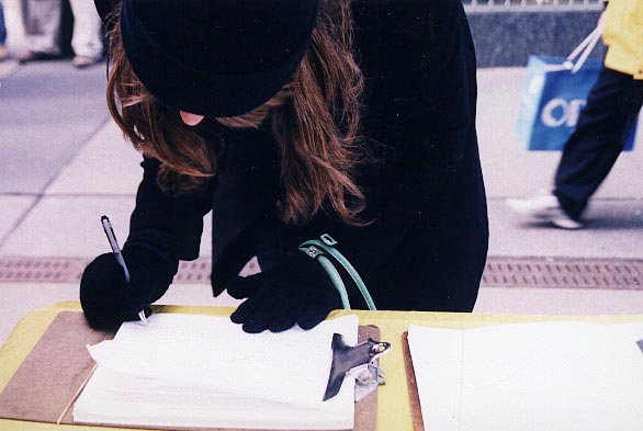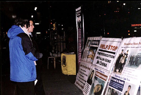 有些善良的人看到酷刑展后,马上掏出钱来想表示他对法轮功学员的同情和支持。学员婉言谢绝,说:“谢谢你的好意,我们不收钱。”