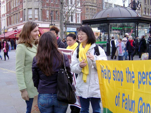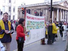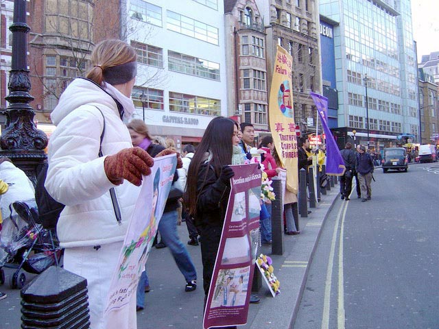 22岁的托马斯(Thomas),是已修炼了7年的瑞典老弟子。他说:“我利用周末的时间来到伦敦,参加在这里举办的一系列活动,就是为了把在中国已经发生了5年的迫害严重情况告诉人们,使他们引起注意,和我们一起来制止这场迫害。”他举起手中受迫害的法轮功学员的孩子的图片说:“这场迫害中,更残酷的是那些无辜的孩子们也遭到了灭绝人性的迫害。他们中最小的孩子才8个月,但是他已经和他的妈妈一起被迫害死了。这个紧急的信息,需要我们尽快的告诉人们,让人们都来谴责和制止虐杀。”