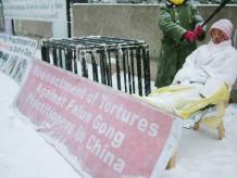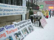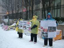 不同国籍的法轮功学员曼哈顿街头冒风雪讲真象(图)