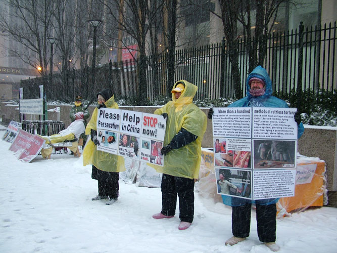 展,使不少纽约人在见证“2005暴风雪”(Blizzard 2005)的同时,也有幸见证了法轮功学员的坚韧和真善忍信仰的力量。