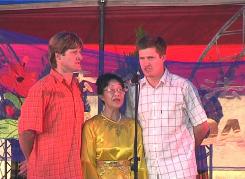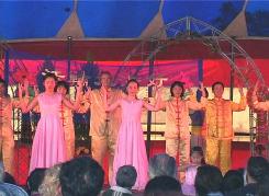 在悠扬的普度音乐声中,学员们上场开始了文艺表演。这时,原本嘈杂纷乱的现场一下子变得安静起来,这美妙音乐,荡涤着人们的心灵,仿佛将世间的纷扰都洗净。不但台下的观众为之感动,就连过往的路人也为它吸引,不由得驻足聆听。演出中,学员们展示了优美舒展的五套功法。腰鼓队的雄姿正气、传统舞蹈的轻盈婀娜以及好似天籁之音的小合唱,尽现学员们和平、纯正、善良和光明的精神面貌,博得了阵阵掌声。