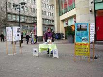2005年1月22日,星期六,来自远远近近不同城市的约二十名法轮功学员冒着寒冷来到了埃森市中心的商业繁忙区。据明慧网报道,被迫害致死的中国大陆法轮功学员已超过一千三百例,仅十二月份得到的死亡案例就超过五十例以上。为了营救在中国大陆仍然被关押受酷刑折磨的法轮功学员,为了尽快结束这场荒谬、毫无人性的迫害,学员们聚集在这里继续讲真象,呼唤良知与正义的支持。