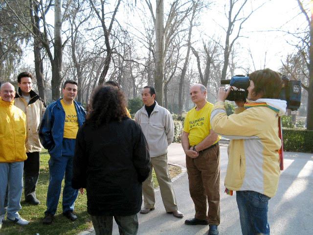 主持人(女):法轮大法──这一有益于人们身心健康,并对社会素质的提高有着促進和推动作用的古老的、而对我们来说却又是新的东方功法、新的东方文化,今天,在马德里的公园中出现了!